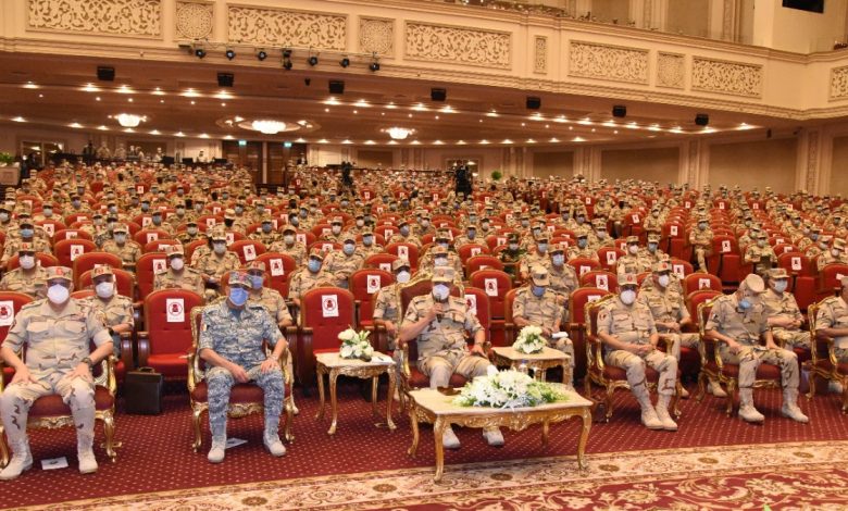 ونقل القائد العام للقوات المسلحة تحيات وتهنئة السيد الرئيس عبد الفتاح السيسى رئيس الجمهورية القائد الأعلى للقوات المسلحة للقادة والضباط لتوليهم الوظائف القيادية بمستوياتها المختلفة والتى تعتبر مسئولية كبرى وضعتها القيادة العامة للقوات المسلحة فى أعناقهم من أجل الحفاظ على الوطن وصون مقدساته .
