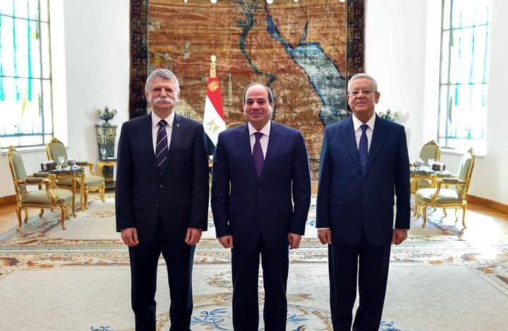 الرئيس السيسي يستقبل رئيس الجمعية الوطنية المجرية بحضور رئيس مجلس النواب