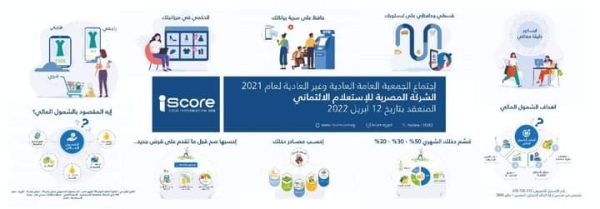 عقدت الشركة المصرية للإستعلام الائتماني I-Score جمعيتها العامة العادية والغير عادية يوم الثلاثاء الموافق 12 ابريل 2022 لمناقشة نتائج الاعمال عن العام المالي 2021. وقد أسفر الاجتماع عن اعتماد الجمعية للقوائم المالية للشركة عن عام 2021 والتي أظهرت نمو أرباح الشركة بنسبة 46% لتصل الي 215 مليون جنيه مصري مقابل 147 مليون جنيه مصري في عام 2020. وبناءا عليه فقد أقرت الجمعية العامة قرار مجلس إدارة الشركة المصرية للإستعلام الائتماني بتوزيع 50 مليون جنيه كتوزيع نقدي علي المساهمين بالإضافة إلى توزيع أسهم مجانية بقيمة 100 مليون جنيه.