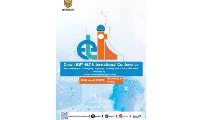 يستعد مركز الدراسات التحضيرية بجامعة السلطان قابوس لتنظيم المؤتمر الدولي الثالث والعشرين لتدريس اللغة الإنجليزية يومي 17 و18 من أبريل المقبل، تحت شعار “جاهزية تدريس اللغة الإنجليزية للمستقبل: دمج تعلم اللغة مع المهارات الحياتية الأساسية”.
