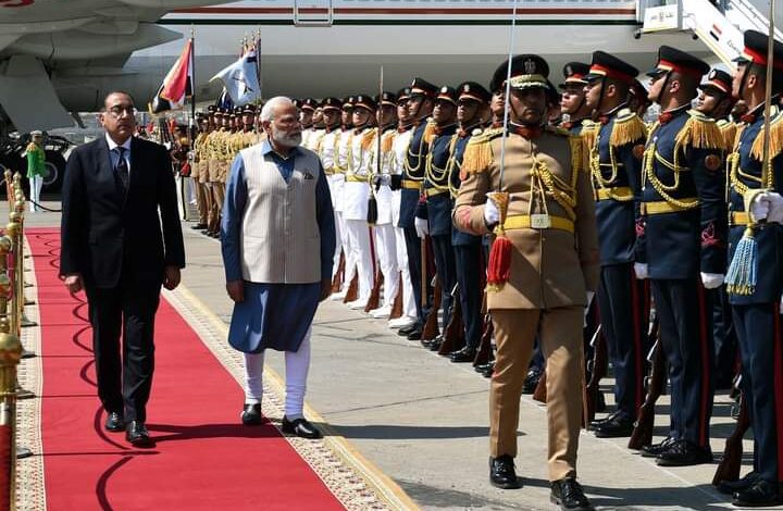 وأُقيمت للضيف الهندي الكبير مراسم استقبال رسمية بمطار القاهرة ومن المُقرر أن يعقد رئيسا وزراء مصر والهند اليوم اجتماع مائدة مستديرة، بمقر مجلس الوزراء، بحضور عدد من الوزراء والمسئولين من الجانبين، لمناقشة جوانب التعاون الثنائي بين مصر والهند.