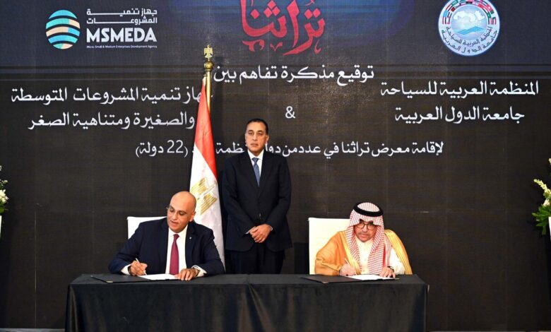 وتهدف مذكرة التفاهم إلى إقامة تعاون مشترك بين جهاز تنمية المشروعات المتوسطة والصغيرة ومتناهية الصغر، والمنظمة العربية للسياحة ، من أجل دعم الحرف اليدوية وتمكين الحرفيين من خلال تنظيم معرض “تراثنا” في عدد من الدول العربية، بما يعزز التسويق والتصدير، وإبراز الهوية الثقافية العربية.