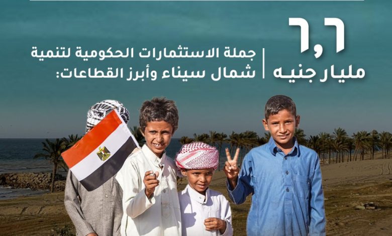 ووفقًا لخطة التنمية الاقتصادية والاجتماعية للعام المالي 2025/2026، فإن جُملة الاستثمارات الحكومية بخطة 25/2026 لتنمية مُحافظة شمال سيناء حوالي 6.6 مليار جنيه، ويستحوذ قطاع الزراعة واستصلاح الأراضي على النسبة الأكبر من إجمالي الاستثمارات الحكوميّة الـمُوجّهة لـمُحافظة شمال سيناء (نحو 21.7%)، يليه قطاع الخدمات الصحّية بنسبة 19.5%، وقطاع التشييد والبناء بنحو 17.4%، وتتوزع النسبة المتبقية بين قطاعات التعليم والكهرباء والصرف الصحي والمياه والنقل والتخزين والأنشطة العقارية.