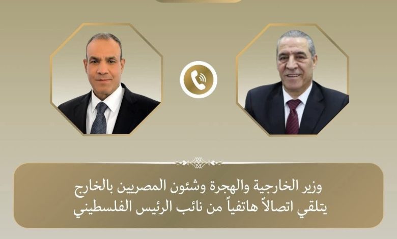 تلقى الدكتور بدر عبد العاطي وزير الخارجية والهجرة وشئون المصريين بالخارج اتصالا هاتفيا من حسين الشيخ نائب الرئيس الفلسطيني لمناقشة التطورات الأخيرة المتمثلة في التوصل لاتفاق لوقف الحرب في قطاع غزة.