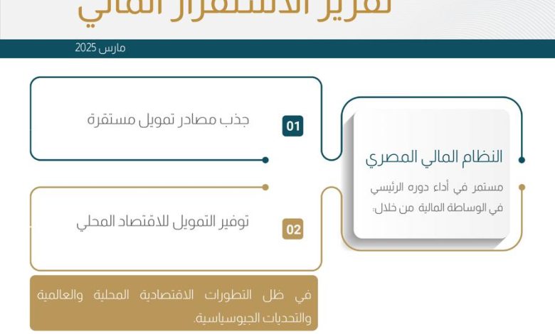 ويولي البنك المركزي أهمية كبيرة للشمول المالي، حيث واصل معدل الشمول المالي اتجاهه الصعودي ليسجل 74.5% في مارس 2025. وعلى صعيد التحول الرقمي، حققت حسابات محافظ الهاتف المحمول زيادة سنوية بمعدل 26% في مارس 2025، والتي جاءت مدفوعة بكفاءة وسلامة الحلول الرقمية. وأكد التقرير على اتخاذ البنك المركزي المصري خطوات فعالة لترسيخ مبادئ حماية حقوق العملاء وتعزيز ثقتهم في القطاع المصرفي بما يساهم في تحقيق الاستقرار المالي.
