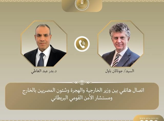 أكد وزير الخارجية والهجرة وشئون المصريين بالخارج الدكتور بدر عبد العاطي، خلال اتصال هاتفي اليوم /الثلاثاء/ مع مستشار الأمن القومي البريطاني جوناثان باول، أهمية التنفيذ الكامل لاتفاق إنهاء الحرب في غزة، وبدء خطوات التعافي المبكر وإعادة الإعمار، وضمان نفاذ المساعدات الإنسانية إلى قطاع غزة بكميات تتناسب مع احتياجاته.