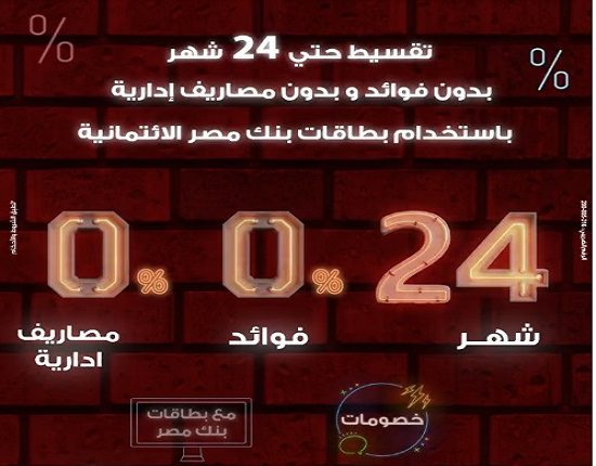 أعلن بنك مصر عن إطلاق عروضه الحصرية لشهر نوفمبر، والتي تتيح لحاملي بطاقات البنك الائتمانية فرصة التقسيط حتى 24 شهرًا بدون فوائد وبدون مصاريف إدارية عند استخدام بطاقات بنك مصر الائتمانية في عمليات الشراء.