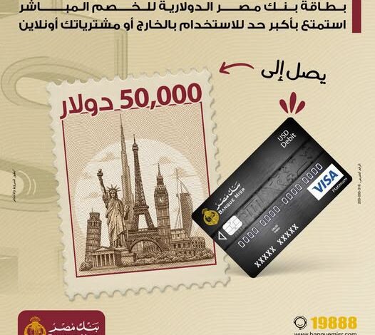 مزايا بطاقة بنك مصر الدولارية للخصم المباشر