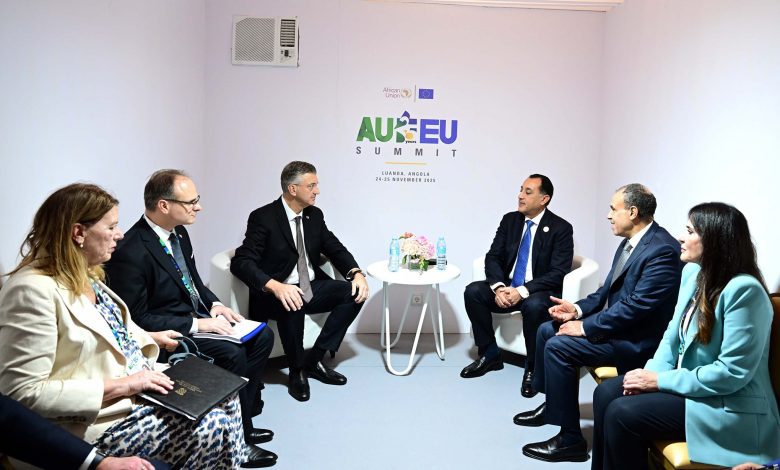 التقى الدكتور مصطفى مدبولي، رئيس مجلس الوزراء، اليوم،  “أندريه بلينكوفيتش”، رئيس وزراء جمهورية كرواتيا، بحضور الدكتور بدر عبدالعاطي، وزير الخارجية والهجرة وشئون المصريين بالخارج، والسفيرة نيفين الحسيني، سفيرة مصر لدى جمهورية أنجولا، وذلك في إطار سلسلة اللقاءات التي يعقدها اليوم على هامش مشاركته نيابة عن فخامة السيد الرئيس عبد الفتاح السيسي، رئيس الجمهورية، في القمة السابعة بين الاتحاد الأفريقي والاتحاد الأوروبي، التي تستضيفها العاصمة الأنجولية لواندا، على مدار يومي ٢٤ و ٢٥ نوفمبر الجاري.
