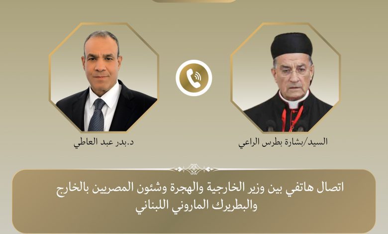 في ختام زيارته إلى العاصمة اللبنانية، أجرى د. بدر عبد العاطي وزير الخارجية والهجرة وشئون المصريين بالخارج اتصالًا هاتفيًا مع غبطة البطريرك الماروني بشارة بطرس الراعي، يوم الأربعاء ٢٦ نوفمبر ٢٠٢٥.