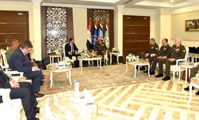 إلتقى الفريق أول عبد المجيد صقر القائد العام للقوات المسلحة وزير الدفاع والإنتاج الحربى السيد رامو كلود بيرو وزير الدفاع الوطنى لجمهورية أفريقيا الوسطى ، كما إلتقى بالسيد سورين بابيكيان وزير دفاع أرمينيا ، والسيد ساديو كمارا وزير الدفاع الوطنى والمحاربين القدماء لدولة مالى ، حيث تناولت اللقاءات آخر المستجدات على الساحتين الإقليمية والدولية ، كما تم مناقشة عدداً من الموضوعات ذات الإهتمام المشترك فى إطار مجالات التعاون العسكرى ونقل وتبادل الخبرات .