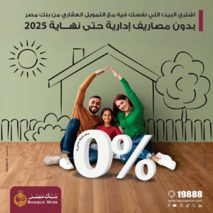 أعلن بنك مصر عن طرح عرض مميز لعملائه على التمويل العقاري خلال شهر ديسمبر 2025، يشمل إعفاءً كاملاً من المصاريف الإدارية حتى نهاية العام، وذلك في إطار حرص البنك على دعم العملاء وتقديم حلول تمويلية تنافسية تلبي احتياجاتهم السكنية والاستثمارية.