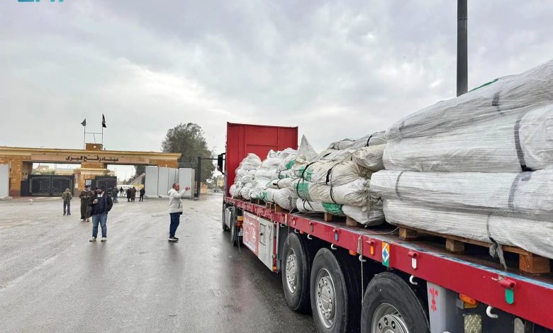 المساعدات الإغاثية والغذائية السعودية تواصل تدفقها إلى قطاع غزة من خلال منفذ رفح البري