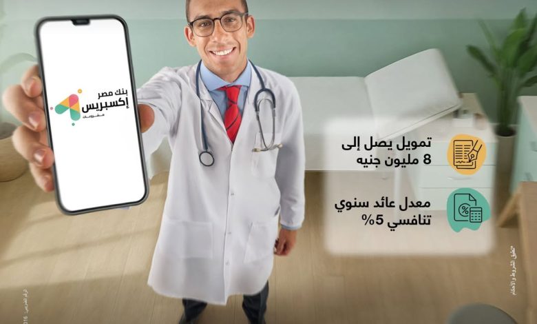 بنك مصر يتيح تمويل «إكسبريس للأطباء» حتى 8 ملايين جنيه لدعم القطاع الطبي بسعر عائد تنافسي 5%