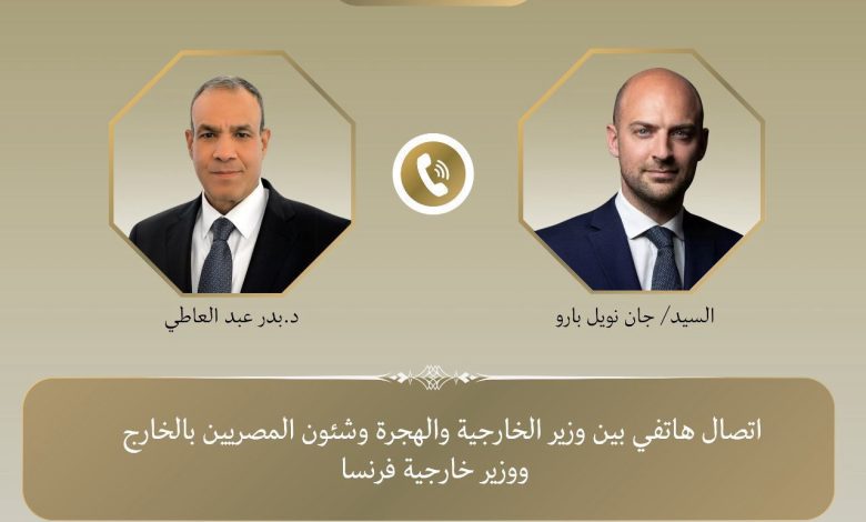 تلقى وزير الخارجية والهجرة وشئون المصريين بالخارج الدكتور بدر عبد العاطي، اتصالاً هاتفياً من وزير خارجية فرنسا جان نويل بارو وذلك في إطار التواصل الدوري لتبادل الرؤى حول مستجدات التطورات الإقليمية ذات الاهتمام المشترك.