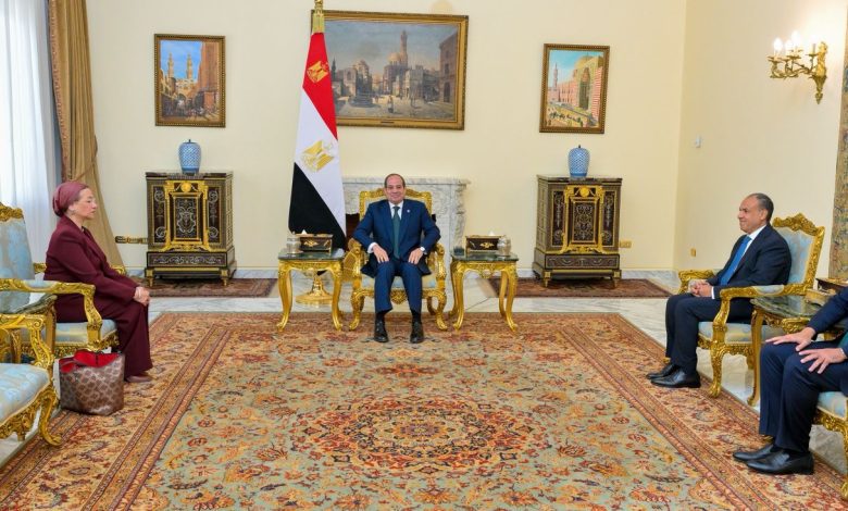 جاء ذلك خلال استقبال الرئيس السيسي اليوم للدكتورة ياسمين فؤاد وكيلة الأمين العام للأمم المتحدة الأمينة التنفيذية لاتفاقية الأمم المتحدة لمكافحة التصحر ، وذلك بحضور الدكتور بدر عبدالعاطي وزيرالخارجية والهجرة وشئون المصريين في الخارج .. حسبما صرح المتحدث الرسمي باسم رئاسة الجمهورية السفير محمد الشناوي.