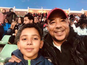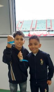 اصطحب الحسن نجله محمد أمين، البالغ من العمر 9 سنوات، تلميذ الصف الرابع الابتدائي وأحد أشبال مدرسة أَعْرِيمِن لكرة القدم، الذي تابع اللقاء بعينين تلمعان بالحلم. كان يقفز مع كل هجمة مصرية، ويصفق بحرارة، مرددًا أسماء اللاعبين، وكأنه يرى مستقبله مرسومًا أمامه. حلمه واضح وبريء: أن يصبح لاعبًا مثل محمد صلاح، “الفرعون المصري”، الذي يعتبره قدوته الأولى ومصدر إلهامه وكان برفقته عند دخوله الاستاد .