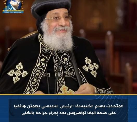 وقال القمص موسي إبراهيم المتحدث باسم الكنيسة القبطية الأرثوذكسية – في تصريح له – إن السيد الرئيس اطمأن خلال الاتصال على حالة قداسة البابا، إثر الجراحة البسيطة التي أجريت لقداسته بإحدى الكليتين مؤخرًا، وطمأن قداسةُ البابا بدوره فخامةَ الرئيس وشكره على مشاعره الطيبة واهتمامه.