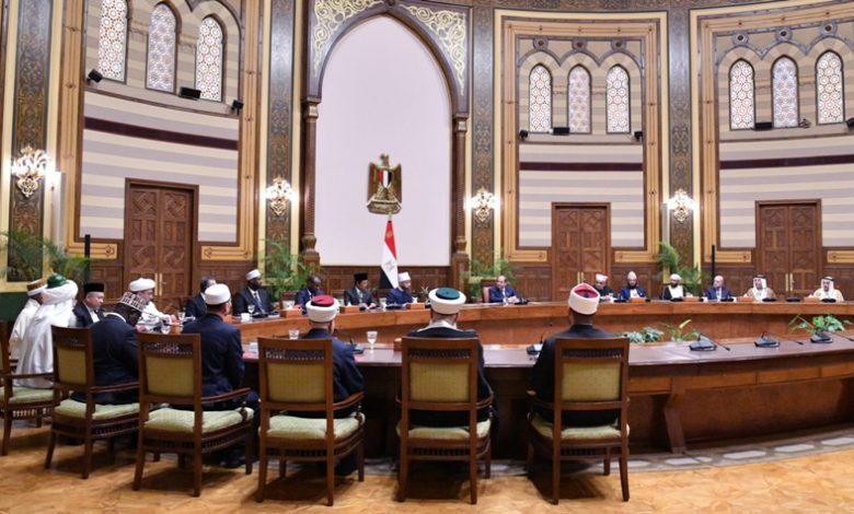 جاء ذلك خلال استقبال الرئيس عبد الفتاح السيسي، اليوم، الوزراء ومفتي الدول، ورؤساء المجالس والهيئات الإسلامية، إلى جانب نخبة من العلماء المشاركين في فعاليات المؤتمر الدولي السادس والثلاثين للمجلس الأعلى للشئون الإسلامية، الذي تستضيفه مصر يومي ١٩ و٢٠ يناير ٢٠٢٦، وذلك بحضور الدكتور أسامة الأزهري وزير الأوقاف، والدكتور أحمد نبوي مخلوف الأمين العام للمجلس الأعلى للشئون الإسلامية.