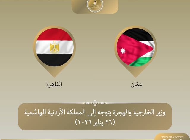 توجه وزير الخارجية والهجرة وشئون المصريين بالخارج الدكتور بدر عبد العاطي اليوم إلى العاصمة الأردنية عمّان،في زيارة تستهدف تعزيز العلاقات الثنائية بين البلدين الشقيقين،