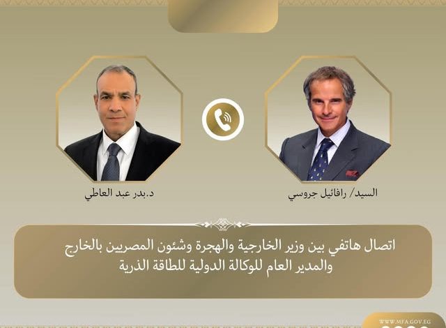 تلقى الدكتور بدر عبد العاطي وزير الخارجية والهجرة وشئون المصريين بالخارج اتصالاً هاتفيًا من السيد رافائيل جروسى المدير العام للوكالة الدولية للطاقة الذرية، اليوم الخميس، بحثا خلاله تطورات الملف النووي الإيراني وجهود خفض التصعيد في المنطقة.