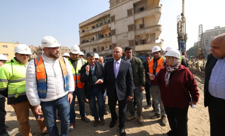 وزير النقل يتفقد محطة الملك الصالح بالمرحلة الأولى للخط الرابع للمترو لمتابعة معالجة هبوط مبنى مجاور