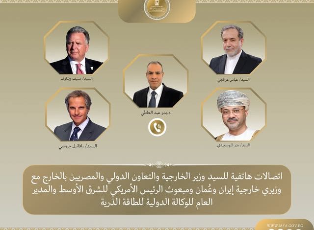 في إطار التوجيهات الرئاسية، واصل د. بدر عبد العاطى وزير الخارجية والتعاون الدولى والمصريين بالخارج اتصالاته المكثفة علي مدار اليومين الأخيرين مع كل من السيد بدر بن حمد البوسعيدي وزير خارجية سلطنة عمان، والسيد عباس عراقجي وزير خارجية إيران، والسيد رفائيل جروسى المدير العام للوكالة الدولية للطاقة الذرية، والسيد ستيف ويتكوف المبعوث الأمريكي الخاص للشرق الأوسط، وذلك فى اطار المساعي لتحقيق التهدئة والتوصل لتسوية توافقية بشأن الملف النووى الايرانى.
