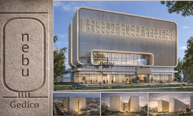 وأشار إلى أن مشروع «نيبو» nebu يقع في قلب العاصمة الإدارية الجديدة بالحى الإدارى، صف أول على محور الوزارات ويطل على مدينة العدالة مباشرة ومجلس النواب وساحة الشعب، ومقر مجلس الوزراء، ومسجد مصر، ويتمتع بتصميم معماري فريد مستوحى من الطراز الفرعوني الحديث، ويتكون من 2 برج تم طرح البرج الأول باسم نيبو، وإلى الآن لم تعلن الشركة عن البرج الثانى ويتكون كل برج من طابقين مخصصين لجراج سفلي، و9 طوابق إدارية بمواصفات مرنة وارتفاعات داخلية تتجاوز 4 أمتار.