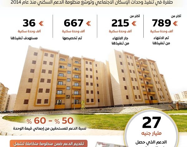 ويأتي ذلك اتساقًا مع توجه الدولة لتعزيز الحماية الاجتماعية وترسيخ الحق في السكن الملائم كأحد ركائز العدالة الاجتماعية، من خلال التوسع في توفير وحدات سكنية لائقة للفئات محدودة الدخل داخل مجتمعات عمرانية متكاملة الخدمات، لا تقتصر على توفير المسكن فحسب، بل تمتد لتشمل بيئة معيشية متكاملة تدعم الاستقرار وتحسن جودة الحياة، وفي هذا الإطار، تعتمد الدولة على منظومة دعم متعددة الأبعاد، تشمل تقديم دعم نقدي مباشر، وإتاحة برامج تمويل عقاري ميسرة بأسعار عائد مخفضة، إلى جانب دعم المرافق والأراضي، بما يسهم في خفض التكلفة النهائية للوحدات، مما يوسع نطاق الاستفادة من مشروعات الإسكان الاجتماعي.