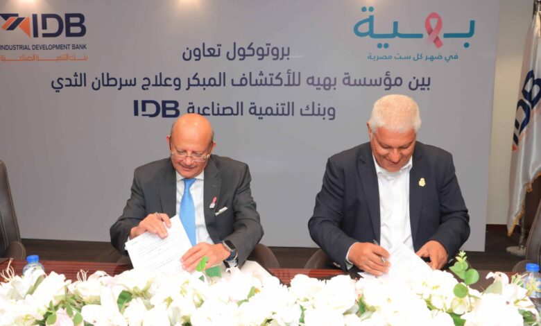 وقع بنك التنمية الصناعية IDB بروتوكول تعاون مع مؤسسة بهية للاكتشاف المبكر وعلاج سرطان الثدي، بهدف دعم تجهيزات طبية متطورة وتعزيز الخدمات المقدمة لعلاج السيدات بالمجان.