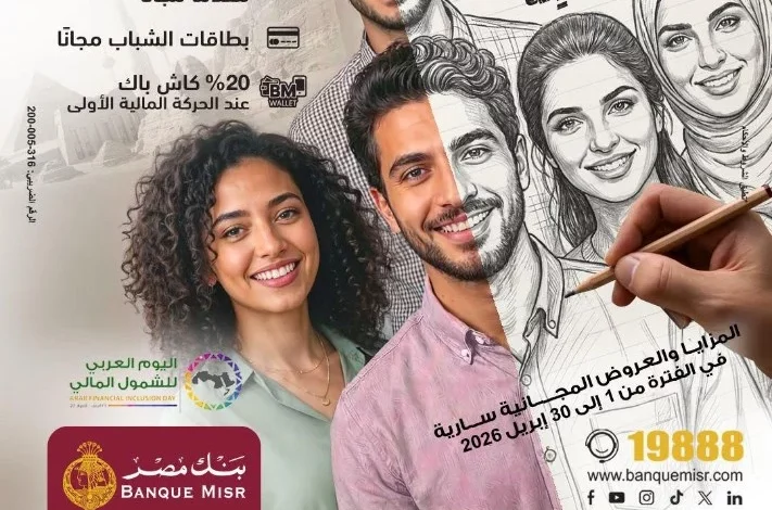 أعلن بنك مصر عن تقديم حزمة واسعة من العروض والمزايا المجانية لعملائه بمناسبة “اليوم العربي للشمول المالي”، وذلك تحت رعاية البنك المركزي المصري ووفقاً لرؤية مصر 2030. وتستهدف هذه المبادرة، التي تمتد من 1 إلى 30 أبريل 2026، تمكين كافة شرائح المجتمع، لا سيما الشباب والمرأة، من الوصول إلى المنتجات المالية المتنوعة مثل حسابات التوفير والخدمات المصرفية الرقمية، مع إعفاء كامل من مصاريف فتح الحسابات والحد الأدنى المطلوب.